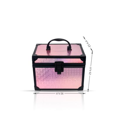 מזוודת איפור S מהודרת הכוללת מראה וידית נשיאה. אידיאלית לאחסון מוצרי איפור או תכשיטים.
