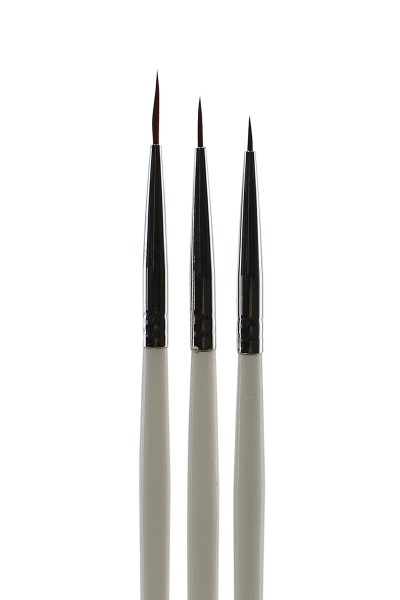 שלישיית מכחולים מקצועיים ומדויקים העמידים בפני לק ואקריל לקישוט ולציור על גבי הציפורניים והגוף.